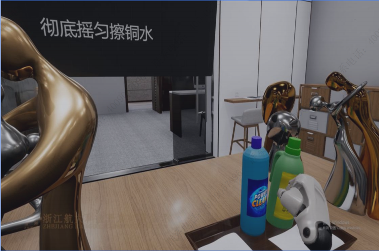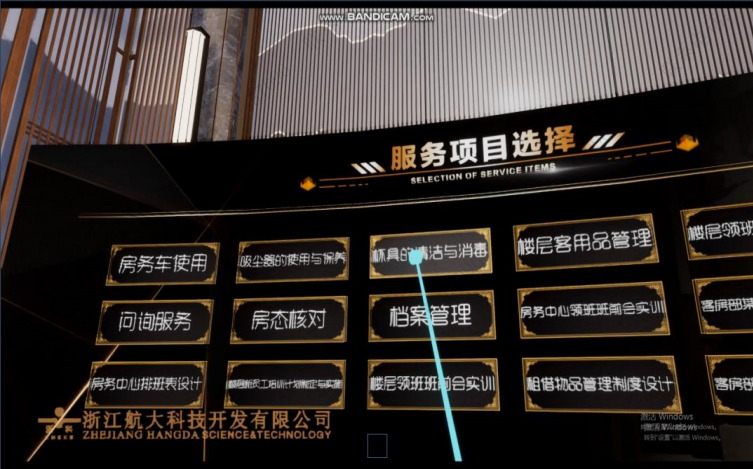 五星级酒店客房服务与管理实训 VR 教学软件分为大厅模块 、工作间模块 、客房模块 、洗衣房模块 、走廊模块 、厕所模块 、电梯模块等。